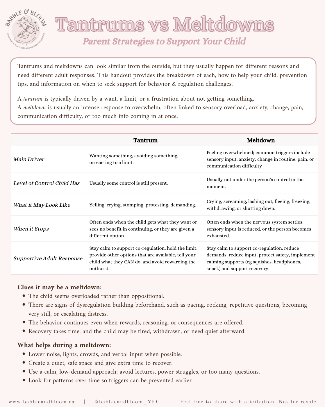 Understanding tantrums vs meltdowns helps you respond in ways that support your child’s regulation and communication. This handout explains what each is, why they happen, and when to seek support.