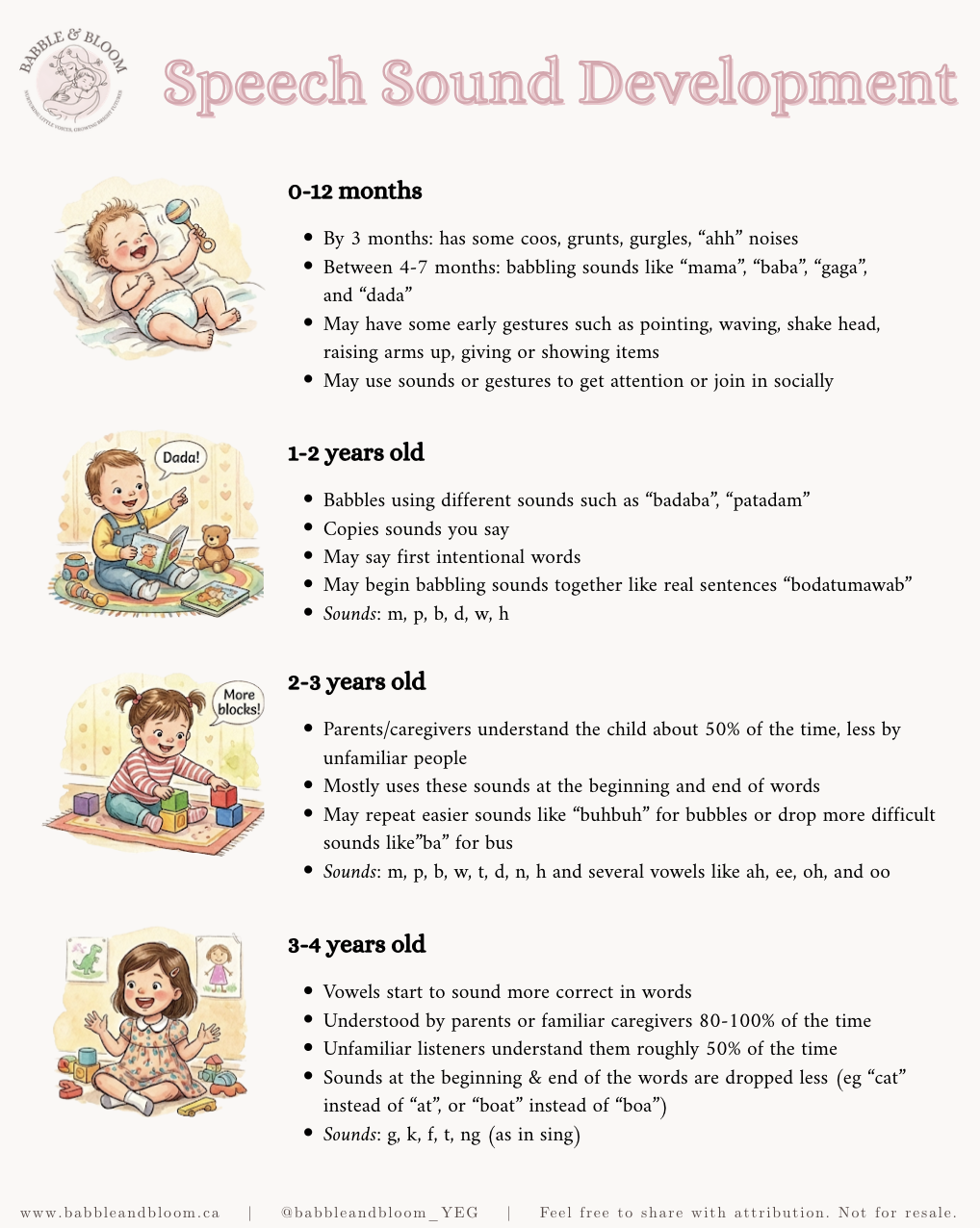 Children learn speech sounds at different rates, but there are patterns we can follow. This chart gives an overview of typical speech sound development so you can feel more confident knowing what to watch for and when to seek support.