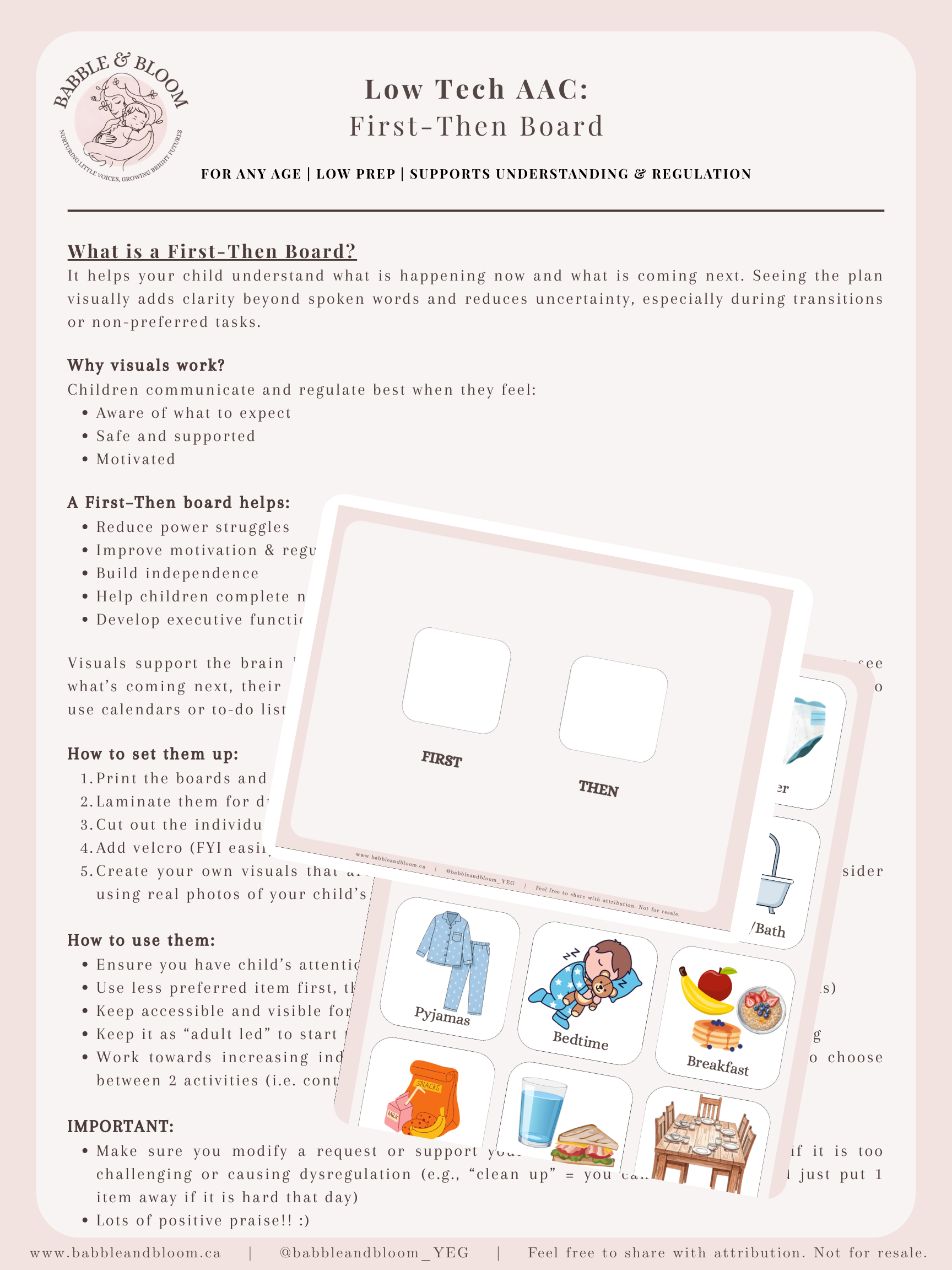 Visuals and predictable routines can reduce stress and help children thrive. This handout shares ways to build calm and communication into everyday moments & routines. Check out our ‘Visuals’ section below for printables.