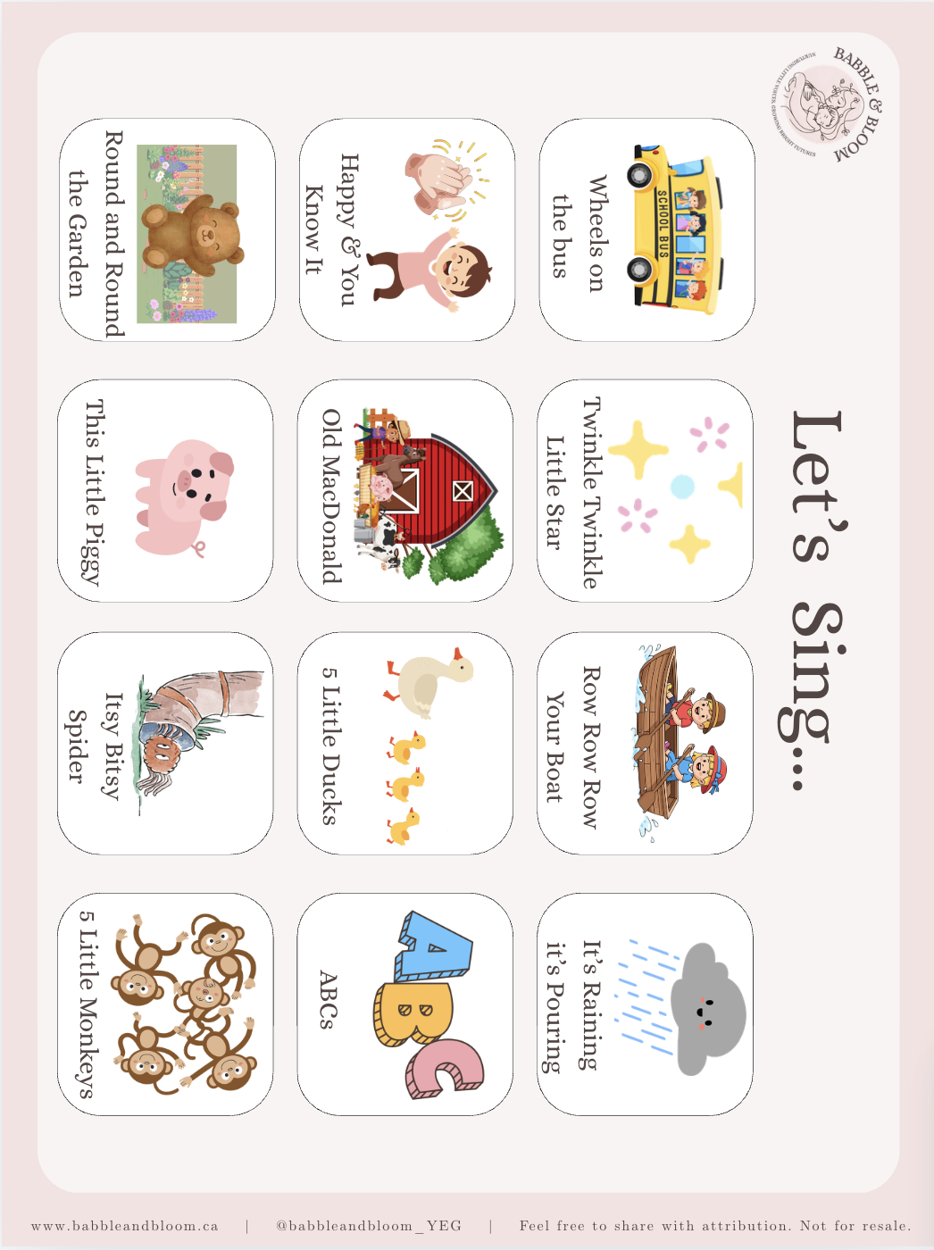 A visual choice board that lets children pick their favourite nursery rhymes. Supports early communication, choice-making, engagement, and joyful language learning through music.